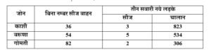 बिना नम्बर एवं दो पहिया वाहन पर तीन सवारी के चेकिंग अभियान में 182 वाहन सीज, 1663 वाहनों का हुआ चालान।